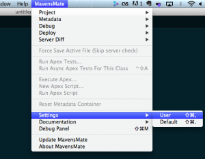 MavensMateを起動したらメニューバーの右上からpluignを選択します。