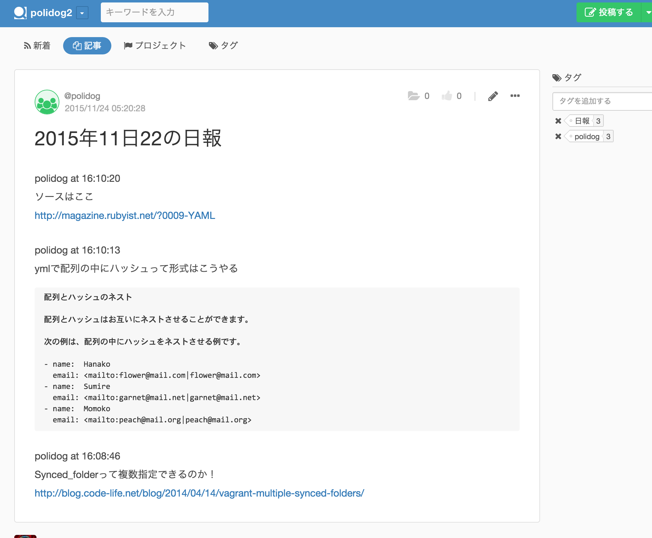 で、やっぱただチャットを読んでるよりは、一日の終りに日報として読めたらいいんじゃないかなと思ったんですよね。