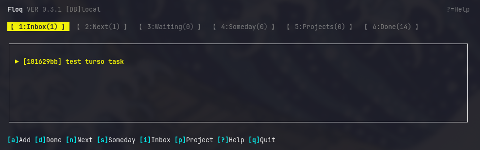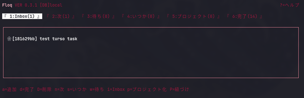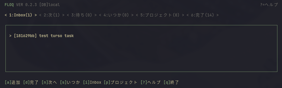 floq add <title>で新しいタスクを登録floq list inboxでinboxの中身を一覧表示